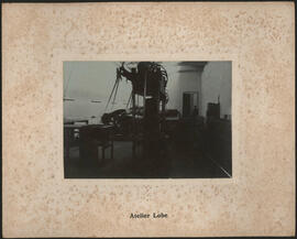 Interior da tecelagem, onde se observa uma máquina denominada urdideira, equipamento mais moderno em relação às outras urdideiras que datam da década de 1910.