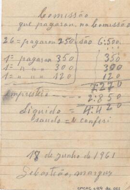 Apontamentos de Sebastião Marques, membro da Corporação Musical Campineira dos Homens de Cor, relativos a pagamentos.